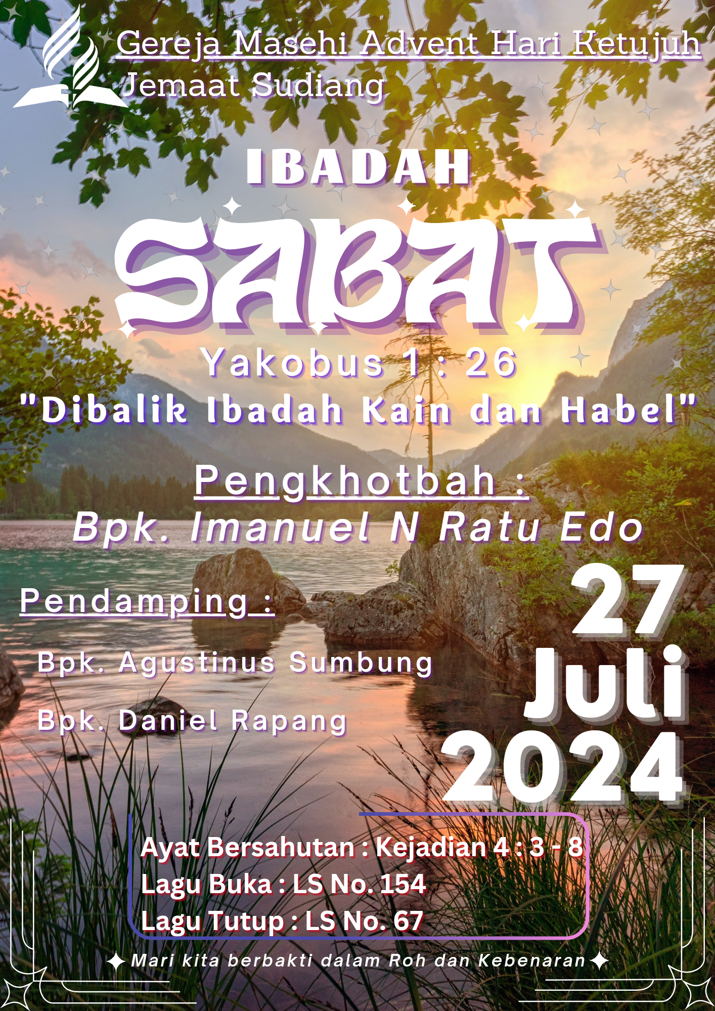 Pelayanan Ibadah Hari Sabat tanggal 27 Juli 2024, acara dimulai pukul 08:30 WITA. #gmahksudiang #sabat #gerejamasehiadventhariketujuh #jemaatsudiang