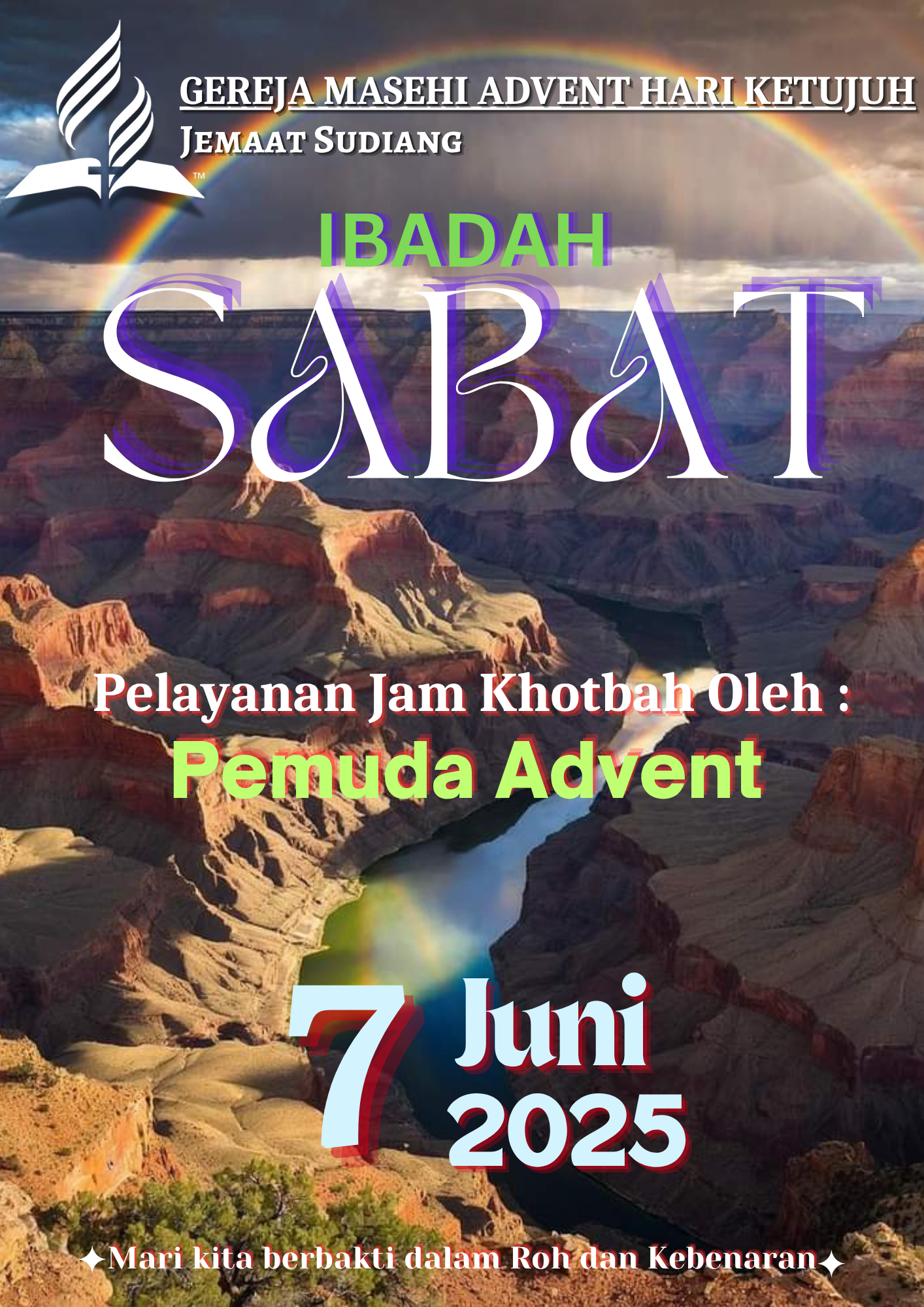Pelayanan Ibadah Hari Sabat tanggal 7 Juni 2025, acara dimulai pukul 08:30 WITA. #gmahksudiang #sabat #gerejamasehiadventhariketujuh #jemaatsudiang
