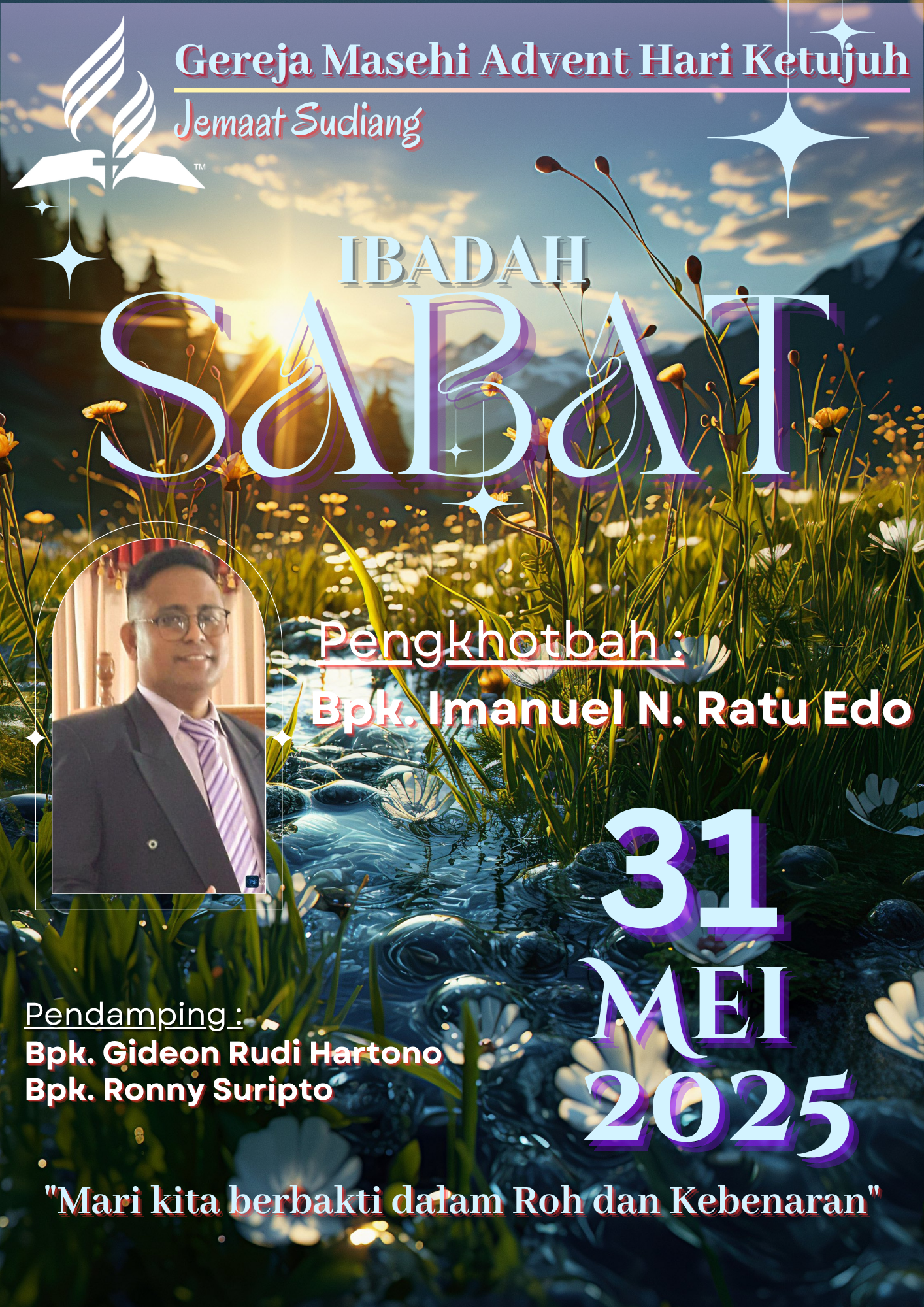 Pelayanan Ibadah Hari Sabat tanggal 31 Mei 2025, acara dimulai pukul 08:30 WITA. #gmahksudiang #sabat #gerejamasehiadventhariketujuh #jemaatsudiang