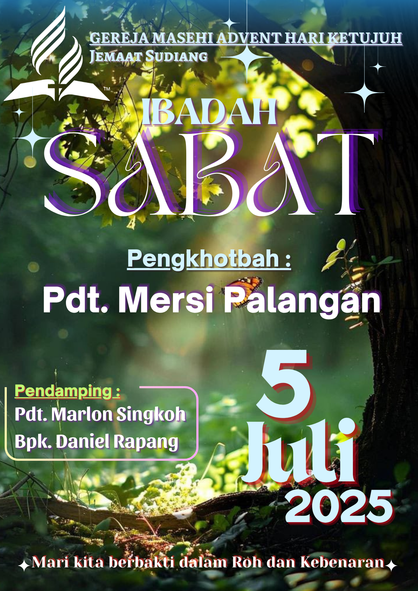 Pelayanan Ibadah Hari Sabat tanggal 5 Juli 2025, acara dimulai pukul 08:30 WITA. #gmahksudiang #sabat #gerejamasehiadventhariketujuh #jemaatsudiang