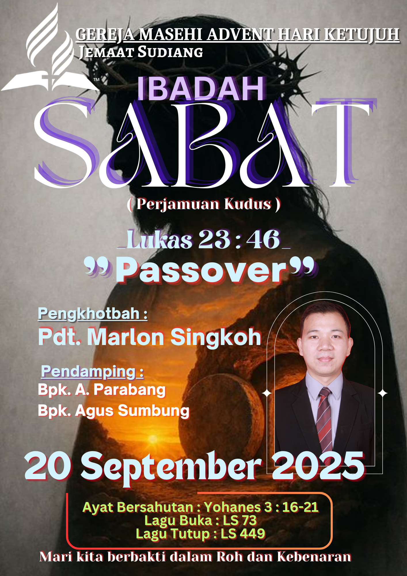 Pelayanan Ibadah Hari Sabat tanggal 5 April 2025, acara dimulai pukul 08:30 WITA. #gmahksudiang #sabat #gerejamasehiadventhariketujuh #jemaatsudiang